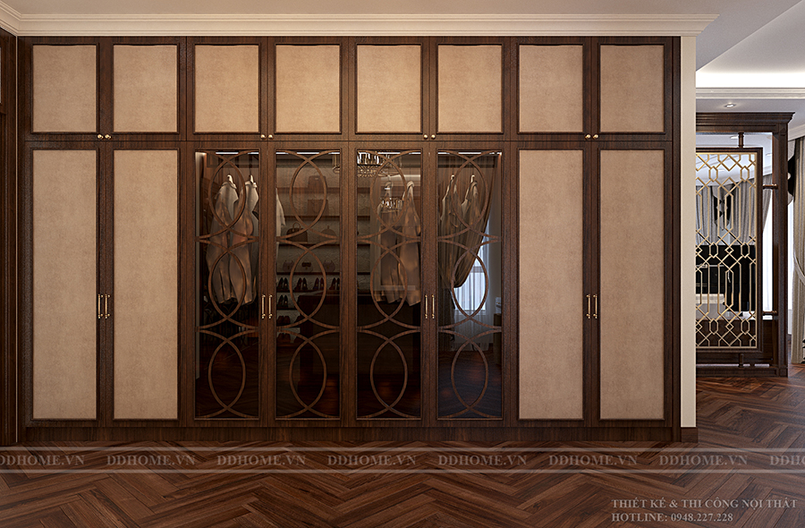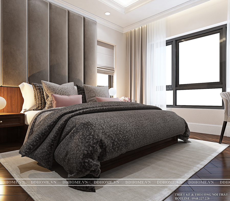 Thiết kế nội thất không gian phòng ngủ Master tầng 1 (phòng ngủ, phòng thay đồ)
