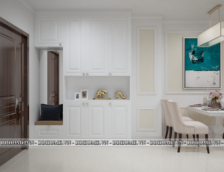 Thiết kế nội thất căn hộ cao cấp Sarimi Sala với phong cách bán cổ điển nhẹ nhàng, tao nhã mang đến sự tinh tế, dịu dàng và thanh thoát. Gia chủ là một người phụ nữ thành đạt, trẻ trung, yêu thích sự nhẹ nhàng, đáng yêu, vì thế gam màu được sử dụng chính trong thiết kế này là màu pastel với sắc hồng, trắng, xanh nhẹ được phối với nhau thật hài hòa từ những chi tiết trần, tường, sàn, các món đồ nội thất…tạo nên một không gian trẻ trung, mềm mại và nữ tính.