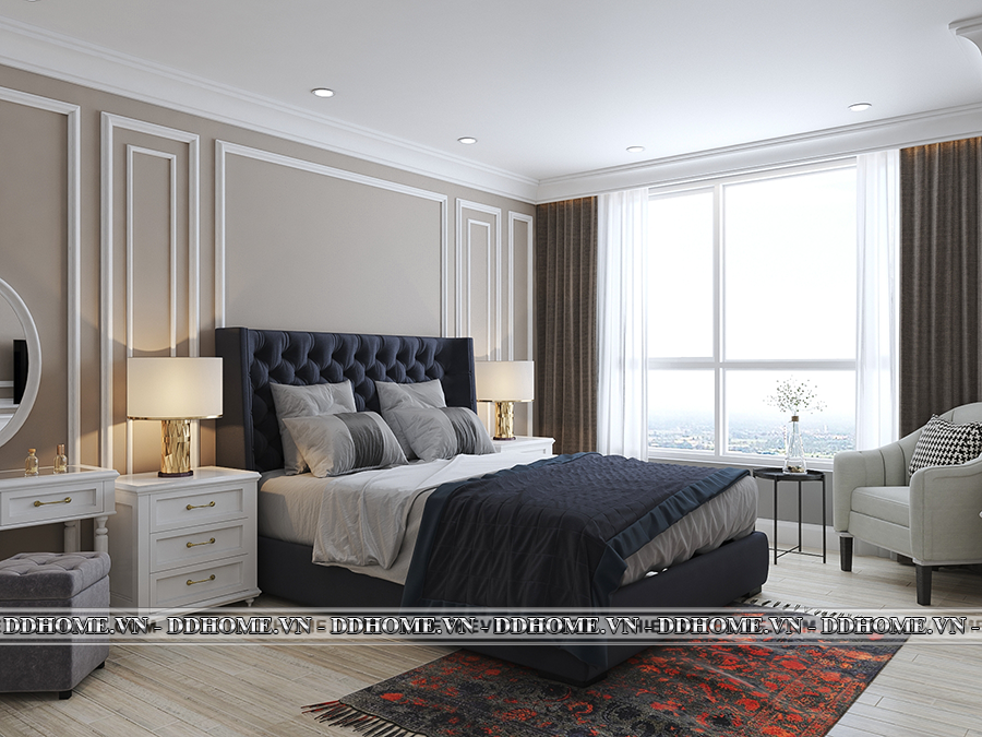 Nếu bạn yêu thích sự hiện đại, đơn giản và tinh tế pha một chút nhẹ nhàng của bán cổ điển thì chắc hẳn mẫu căn hộ dưới đây sẽ là một gợi ý mà bạn khó lòng từ chối. Điểm nhấn nổi bật trong thiết kế nội thất chung cư The Manor Bình Thạnh là những đường chỉ trang trí chạy dọc trên các bức tường, trần một cách đối xứng và cân bằng. Thêm vào đó thiết kế chung cư The Manor với gam màu trung tính, nhẹ nhàng được lựa chọn làm màu chủ đạo trong các không gian tạo nên một cái nhìn tổng thể đầy ấn tượng và sang trọng.
